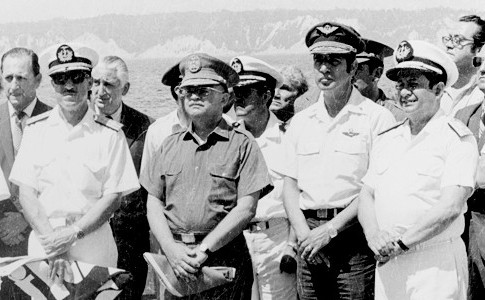 En el centro aparece el general Guillermo Rodríguez Lara; a la izquierda de él, el almirante Alfredo Poveda, su ministro de Gobierno y quien posteriormente lo sucediera en la Junta Militar. Foto: Archivo