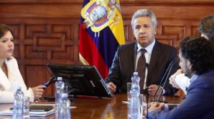 En la reunión que se instaló desde la 11:00 participan, además, la vicepresidenta de la República, María Alejandra Vicuña; Augusto Barrera, secretario Nacional de Educación, Ciencia, Tecnología e Innovación; Andrés Michelena, titular de la Secom; y otros funcionarios.