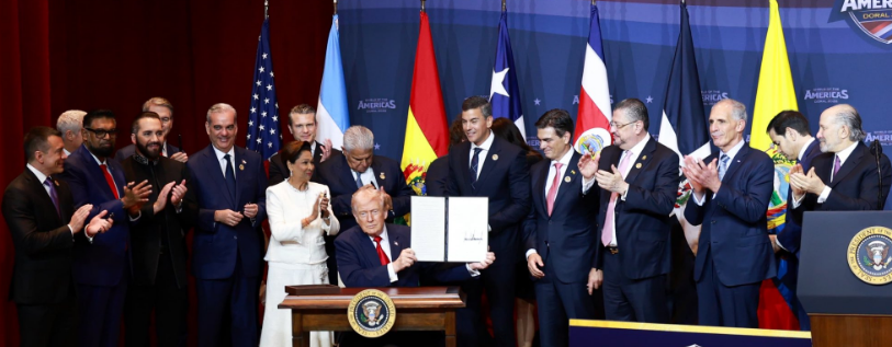 El líder republicano presentó el llamado ‘Escudo de las Américas’ durante una cumbre con doce aliados ideológicos de la región en el Trump National Doral Miami, un resort con campo de golf propiedad del mandatario.